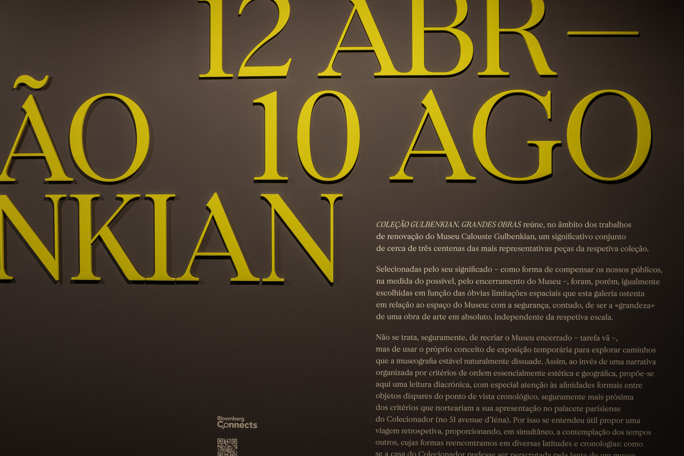 Great Works, an exhibition showcasing emblematic pieces from Gulbenkian’s Collection, honores the unique and intuitive approach of the trendsetter Mr. Calouste Sarkis Gulbenkian in art collecting. An approach which transcended both geography and time, mirroring its keen intelligence and personality.